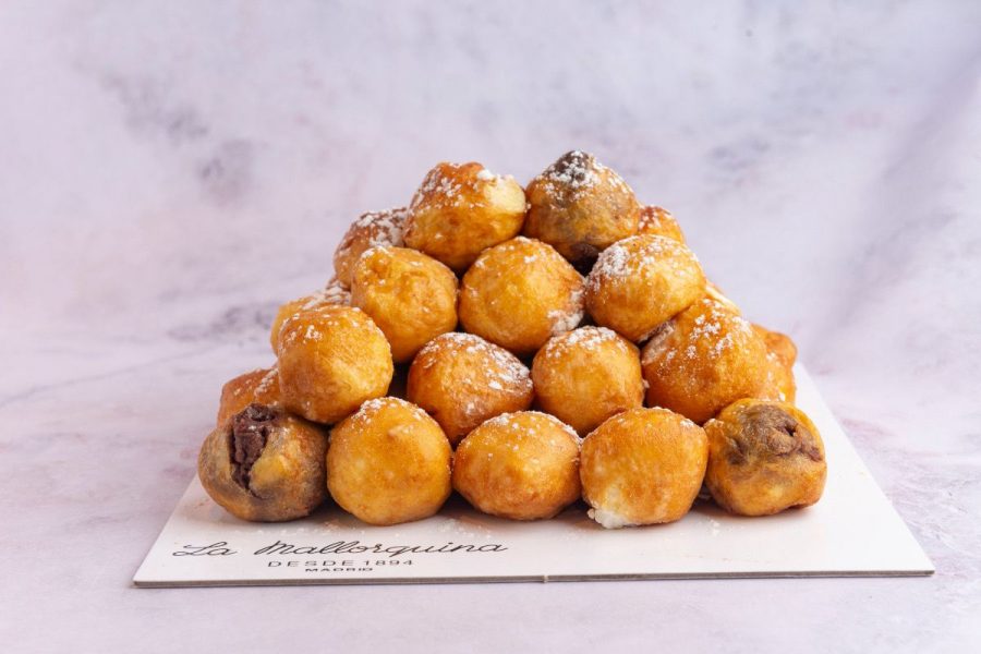 Con la llegada del 1 de noviembre, las pastelerías madrileñas se llenan de buñuelos recién hechos, elaborados con masa ligera frita, rellenos cremosos y una fina capa de azúcar glas que los convierte en un bocado irresistible.