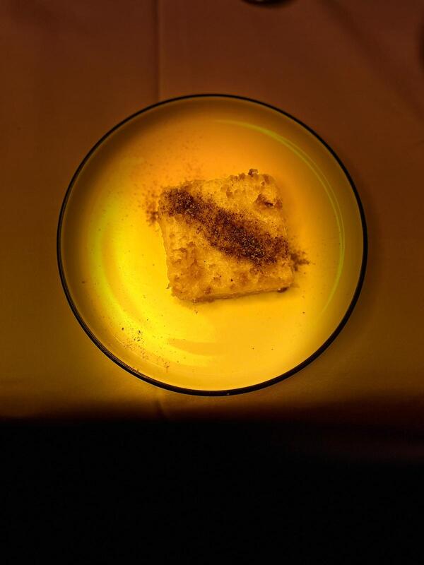 Su menú comienza con unas croquetas de cocido, y un aperitivo de guindillas y cebolletas. A continuación, el “primer vuelco” que se sirve de la olla al plato: la sopa de fideos.