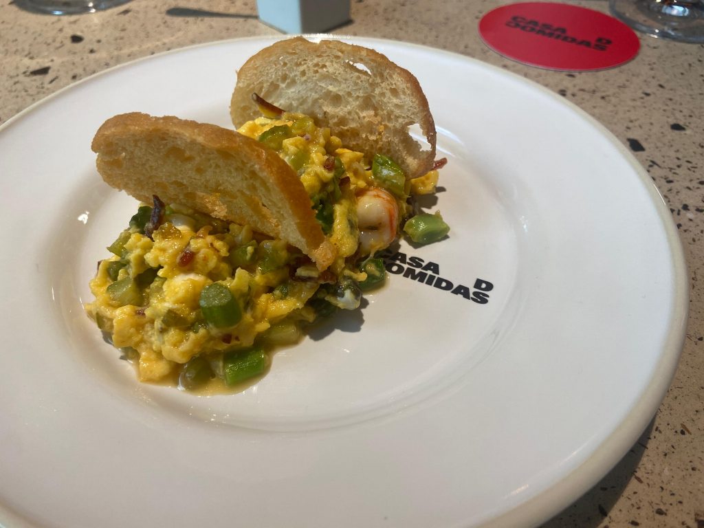 También destacan los platos con huevo, como el revuelto de trigueros y ajetes con gambas, que aporta textura y frescura a cada bocado.