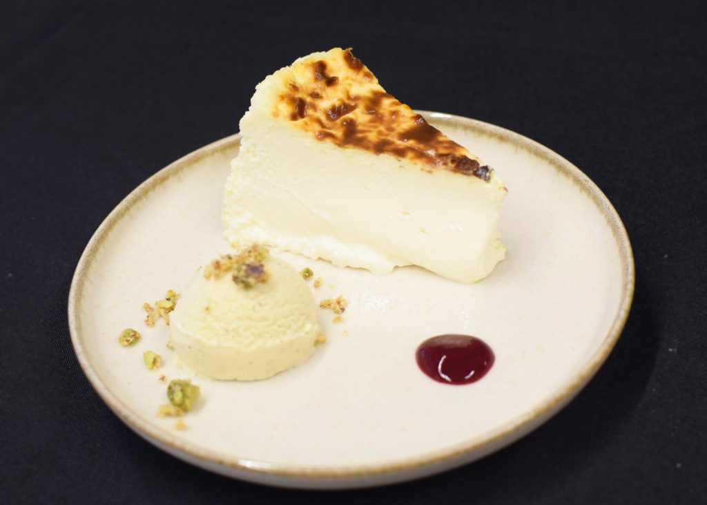 La tarta ganadora se elabora con queso madurado de cabra La Laguna, protagonista absoluto, y un queso crema de Albe Lácteas del Jarama, que se mezcla con yemas y huevos de Granjas Villarreal para lograr una textura cremosa pero firme.