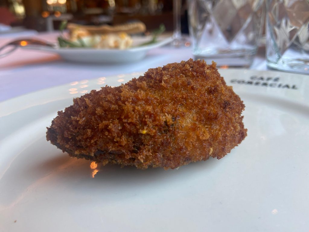 Pero no se queda ahí. También encontrarás croquetas de jamón, ensaladilla con ventresca, tacos de cochinita pibil, pulpo a la brasa, alcachofas confitadas, tartar de salmón, steak tartar, carrillera ibérica, la hamburguesa Café Comercial y postres artesanales como la tarta de queso, el coulant de chocolate o el flan de queso.