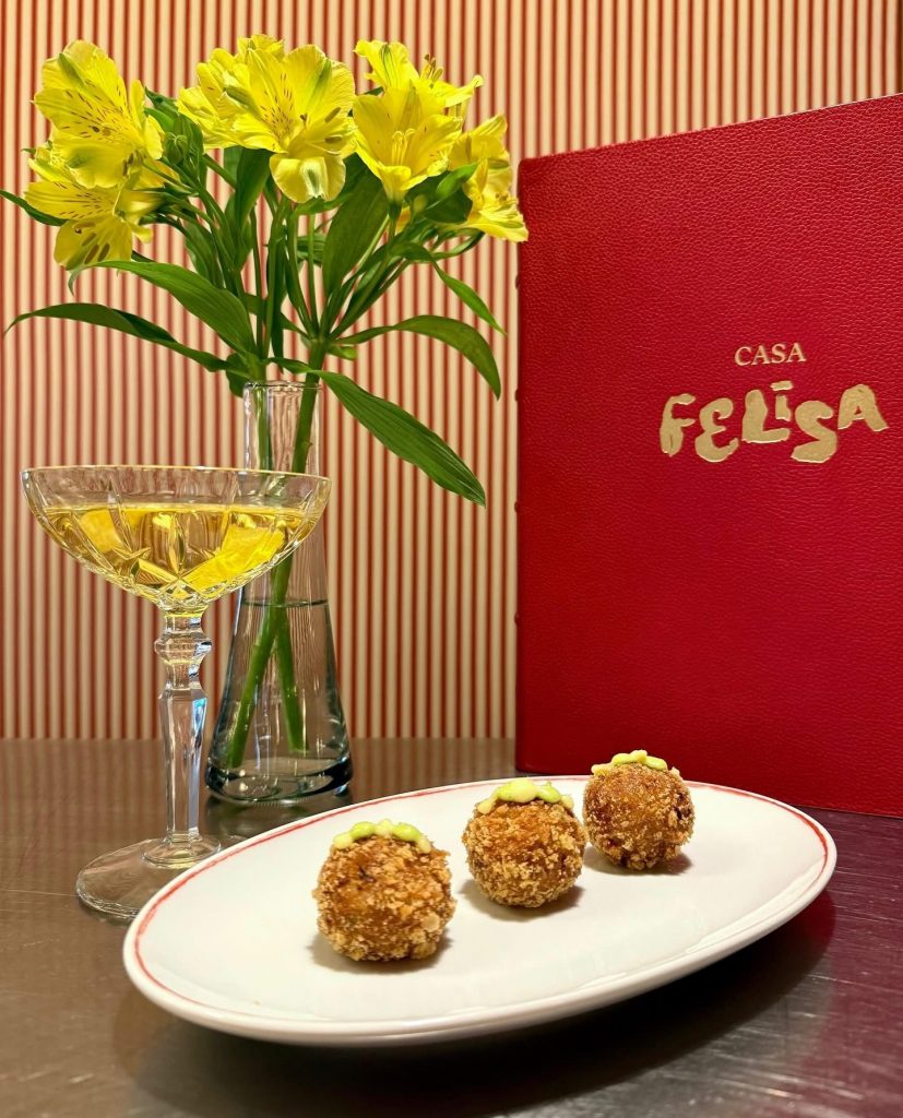 Urso Hotel & Spa presenta unos callos de Felisa que son pura esencia madrileña, acompañados por una croqueta de bacalao con mayonesa de cebollino y wasabi.