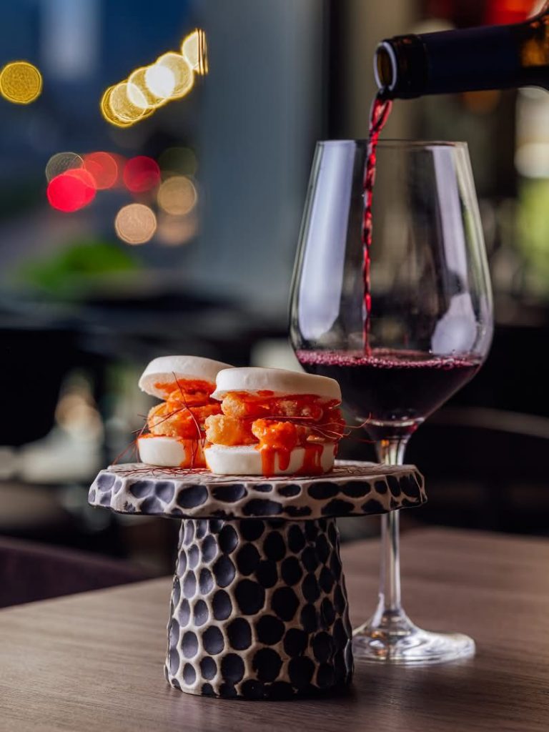 En el Pinzelada Lounge del BLESS Hotel Madrid, el ravioli crujiente de rabo de toro se convierte en una joya nacional, maridada con un tinto de Ribera del Duero.